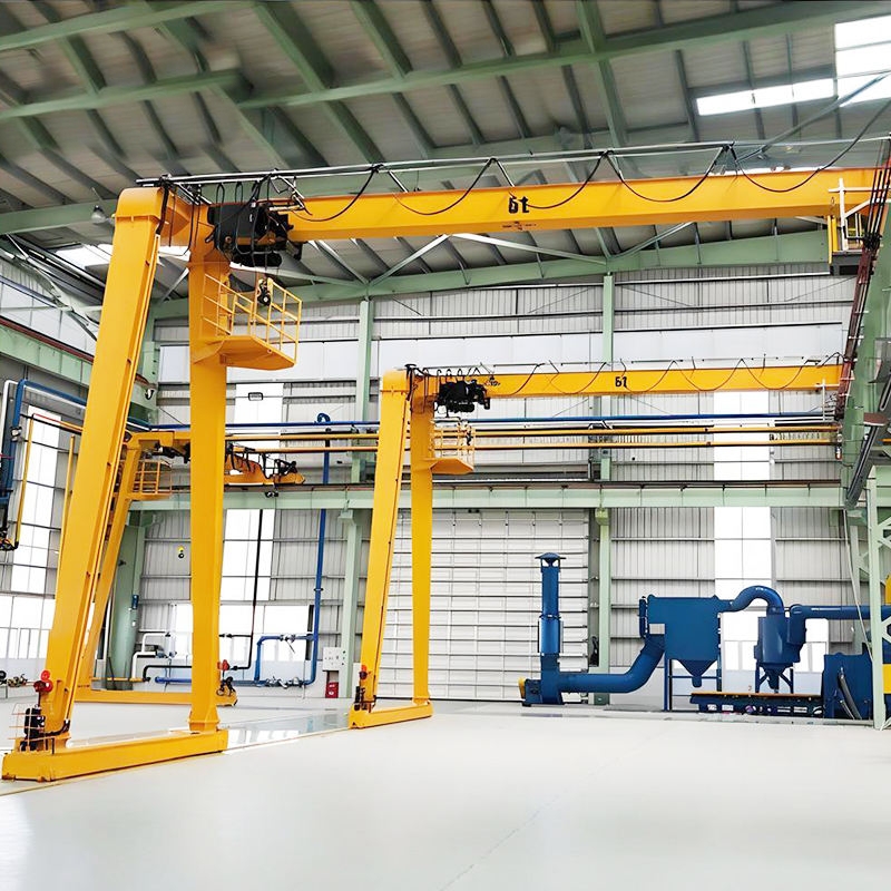 一側(cè)有支腿,沿地面軌道運(yùn)行;另一側(cè)無(wú)支腿,沿廠房上部軌道運(yùn)行,形成 "半門(mén)" 結(jié)構(gòu)
